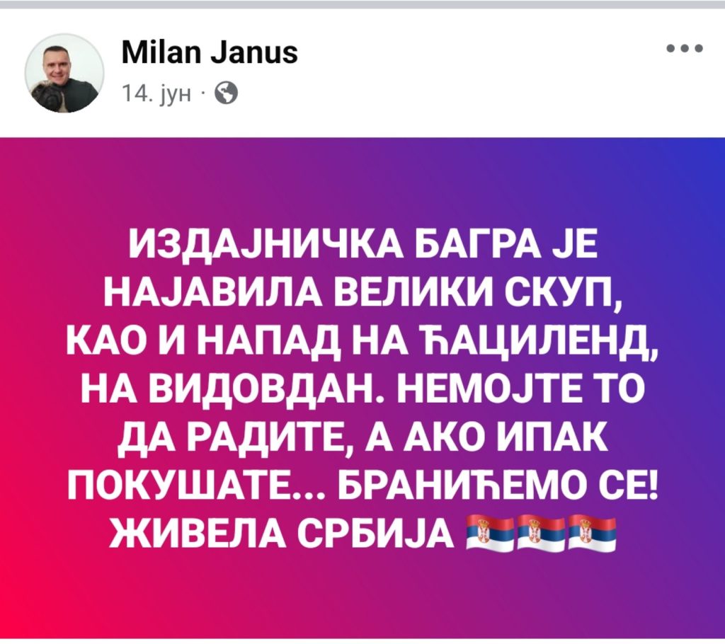 – “Милан је рекао наглас оно што многи мисле – да је Видовдан више од начина и да неке ствари нису за перформанс. То није напад, већ став. И такав став је сасвим легитиман, као и сваки протест. ”