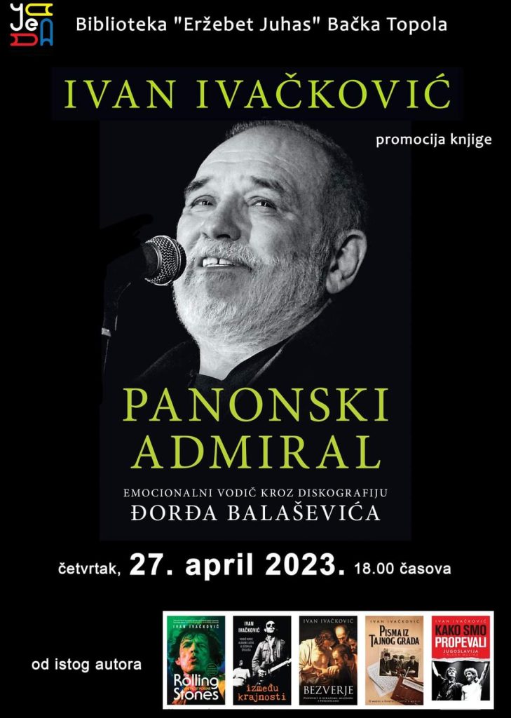 Biografija “Panonski admiral” kao naslov kojim je njegov autor, Ivan Ivačković, sažeo karijeru velikog pesnika Đorđa Balaševića i vremena u kojem je on stvarao, biće predstavljena Bačkotopolčanima u četvrtak, 27. aprila, u Biblioteci “Eržebet Juhas”.