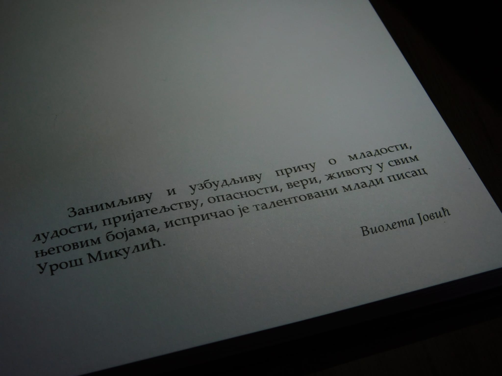 Književnica Violeta Jović u svojoj recenziji kaže da je novo delo Uroša Mikulića „roman za mlade, o mladosti, iz pera mladosti, koji drži čitaoca od prve do poslednje reči“.