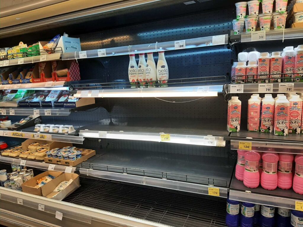 Stariji par, koji smo takođe zatekli kod frižidera s mlečnim proizvodima, isto je negodovao zbog visoke cene i nestašice, i prošao prazne korpe uz komentar da ga “jednostavno neće ni piti”.