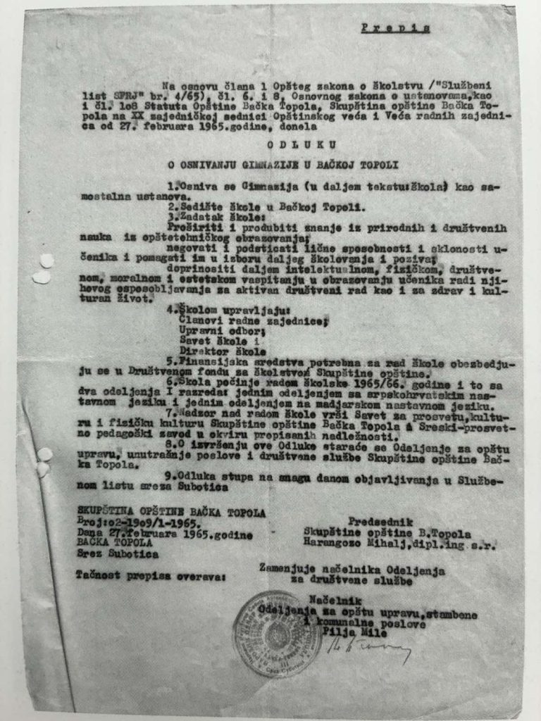 “Kadar u školi je dosta podmlađen i imamo dosta novih profesora, od kojh je otprilike polovina iz Bačke Topole. Malo imamo problem sa stručnim kadrom kada su u pitanju latinski i fizika”, kaže direktor bačkopotoske gimnazije, izdvajajući podatak da je kroz ovu školu od njenog osnivanja prošlo gotovo 300 zaposlenih, od kojih je bilo dosta i onih koji su ovde proveli ceo svoj radni vek.