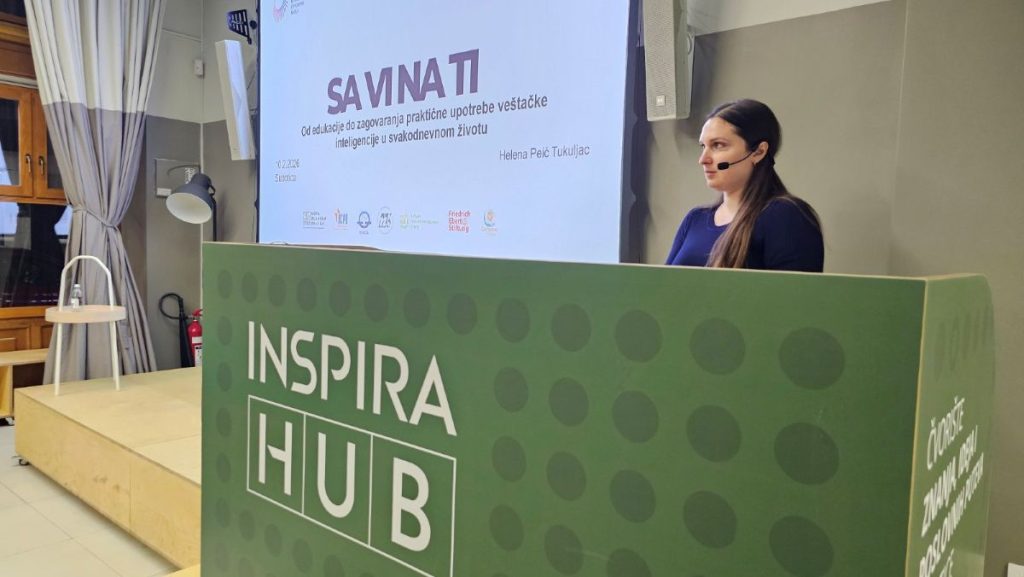 Helena Peić Tukuljac je članica Srpskog društva za veštačku inteligenciju (Serbian AI Society – SAIS), koje trenutno realizuje edukativni projekat “Sa VI na Ti” koji kroz besplatne radionice širom Srbije pomaže građanima da veštačku inteligenciju razumeju i koriste u svakodnevnom životu i poslu – bez tehničkog predznanja.