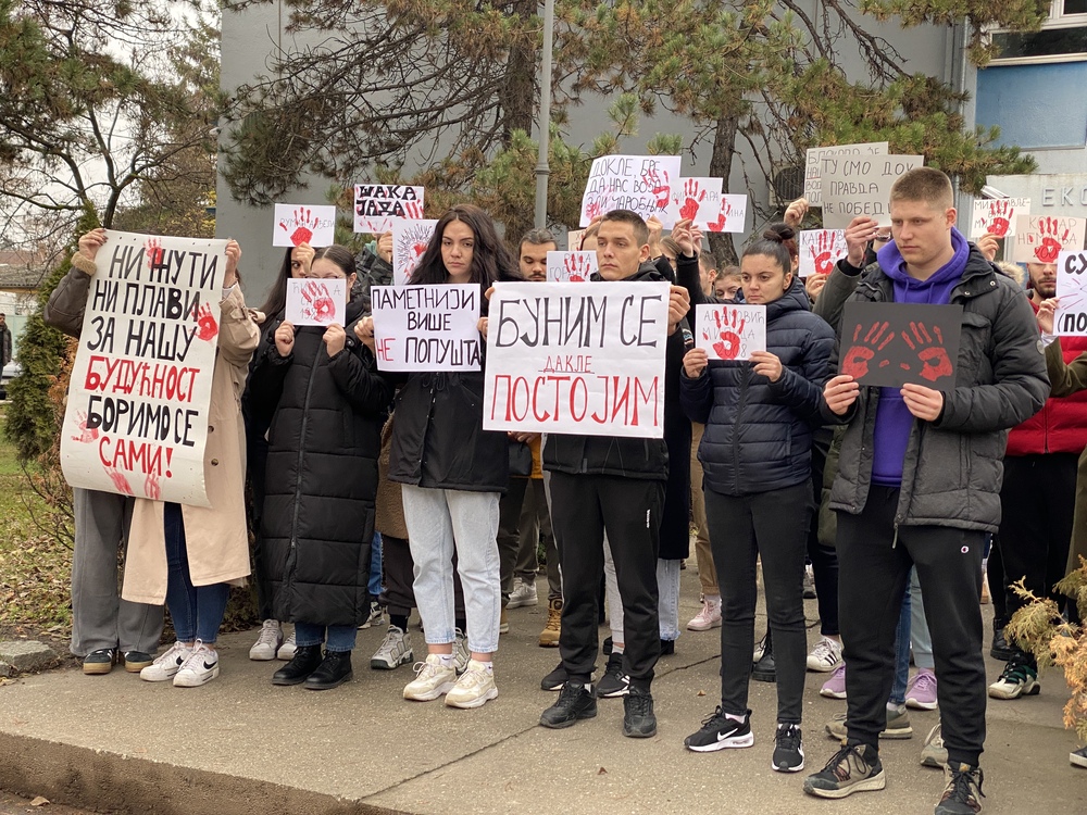Studenti Ekonomskog fakulteta su i danas u 11.52 časova na 15 minuta odali počast žrtvama novosadske tragedije u kojoj je život izgubilo 15 ljudi kada se na njih obrušila betonska nadstrešnica na Železničkoj stanici.