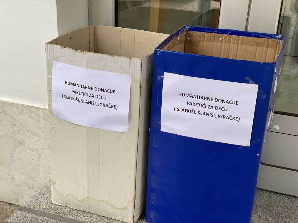 Ispred glavnog ulaza u Ekonomski fakultet nalaze se dve kutije u koje građani svakog dana od 7.30 do 17 časova mogu da ostave donacije za socijalno ugroženu decu: paketiće, slatkiše, slaniše, igračke…