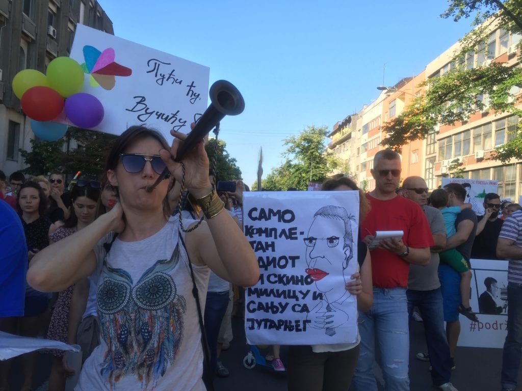 Na večerašnjem protestu „Podržimo RTV“ okupilo se oko hiljadu građana koji su, osim tvrdnje Dinka Gruhonjića iz naslova, od reditelja Kokana Mladenovića čuli da Srbiji ne treba ni moderna, ni hrabra ni slobodna televizija, jer kao zemlja nije takva