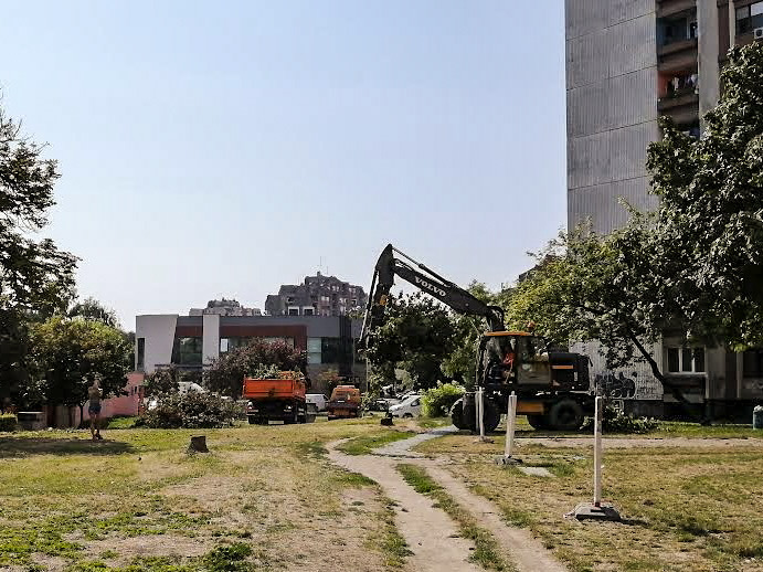 On je kazao da je zbog radova isečeno i nekoliko stabala drveća na ovoj parceli, ali da će biti zasađena nova.