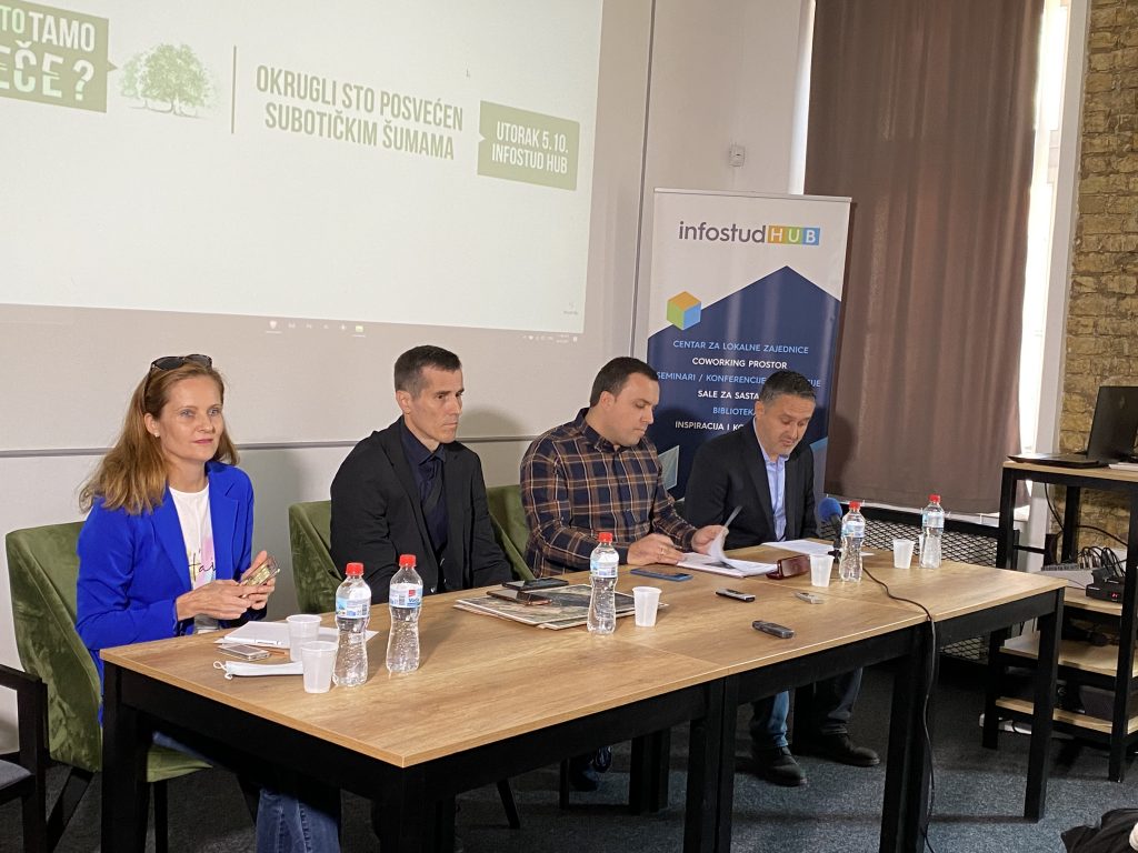 Okrugli sto na temu seče subotičkih šuma, koji je održan u prostoru Infostud Hub-a, organizovala je redakcija portala Subotičke.rs. Razgovor je zamišljen da uspostavi dijalog između građana koji se protive seči stabala i predstavnika JP “Vojvodinašume”.