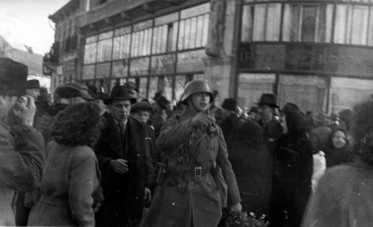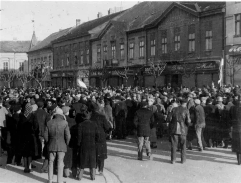 Doček mađarskih okupatora u centru Subotice 12. aprila 1941, izvor: Istorijski arhiv Subotica, zbirka F:176
