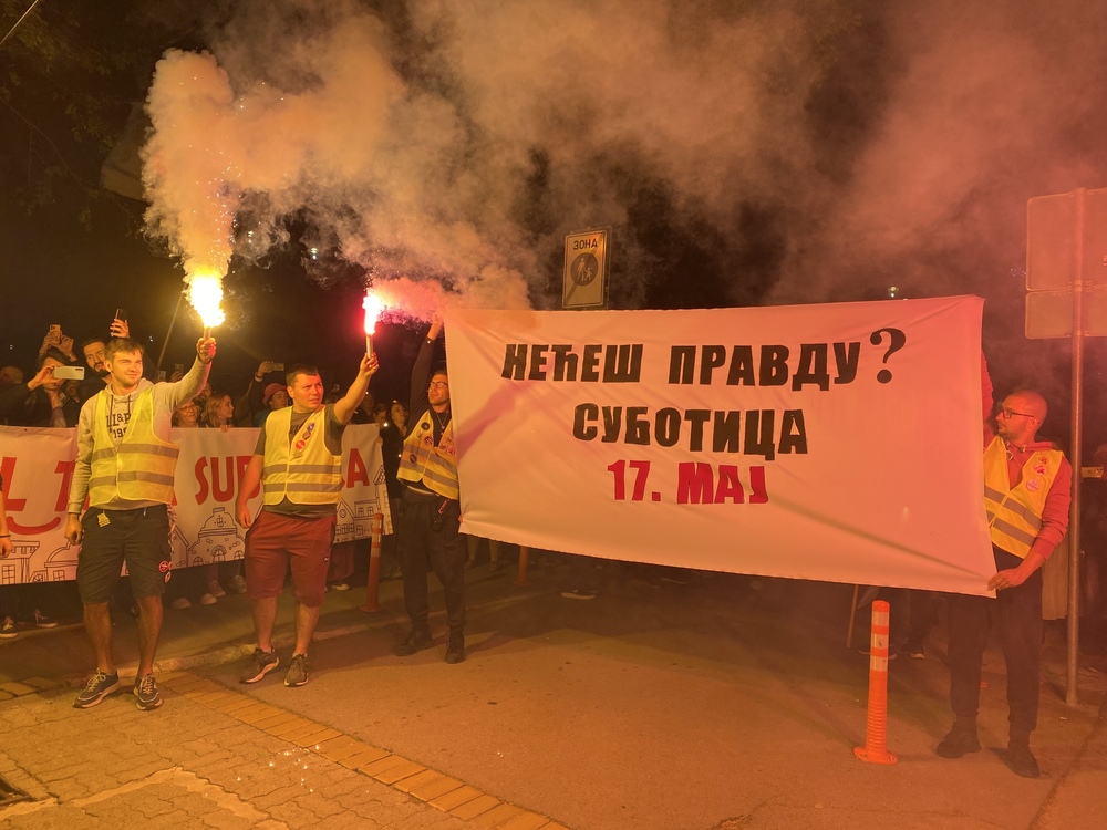 Jedan od studenata Visoke škole strukovnih studija za obrazovanje vaspitača i trenera u Subotici rekao je da su se okupili večeras ispred Gradske kuće da zajedno podignu glas za pravdu, za dostojanstvo i za budućnost koju, kako kažu, zaslužuju.