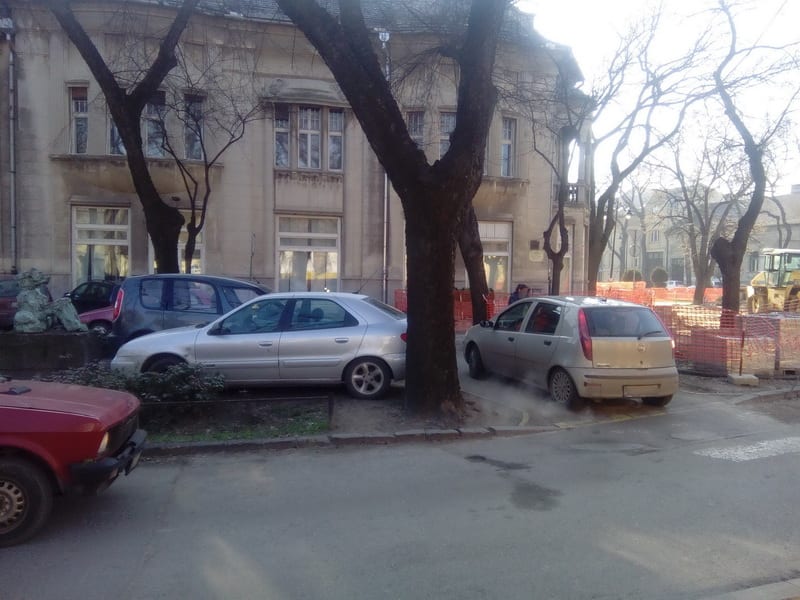 Umesto da lokalna samouprava naredi Javnom komunalnom preduzeću „Čistoća i zelenilo“ da promptno ukloni ženu, drvo, spomenik i žicu, koja će onda za to (pošto nije nadležna za obavljanje istih) angažovati „Goranski rasadnik“ (koji će dati najbolju ponudu na tenderu), mi i danas (večeras) imamo nemar i javašluk, koji rezultiraju time da, ni krivi ni dužni, vozači moraju usporavati i na trotoarima, a neki bogami, kao što se iz priloženog vidi, čak i stati, nastavljajući svoje putovanje od tačke „A“ do tačke „B“ – pešice. Isto kao i oni jadnici koji u bivšoj Engelsovoj, sadašnjoj Korvinovoj, odnosno budućoj Čokanjovoj ni na celodnevnu kafu ne mogu ući svojom „hondom“, a kamoli „džipom“.