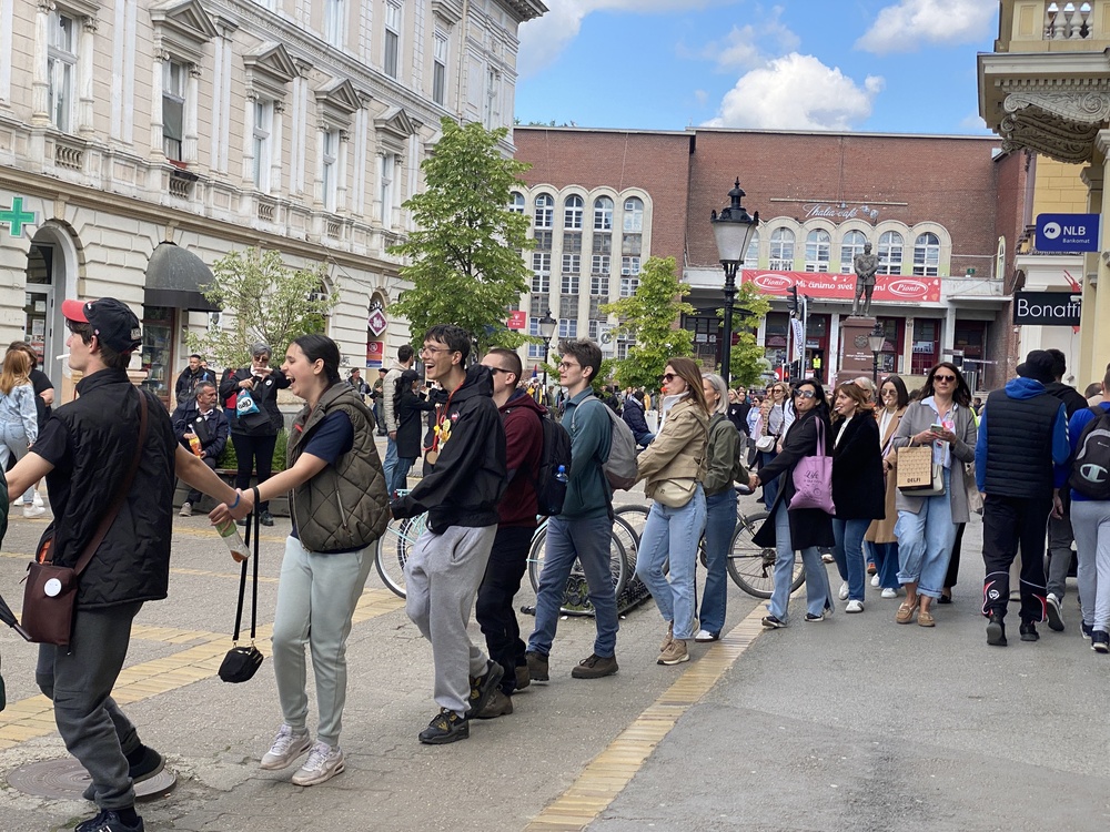 Svoj performans koji simbolizuje zajedništvo imali su i subotički glumci i radnici u ustanovama kulture koji su se u koloni, držeći se za ruke prošetali iz Parka Ferenca Rajhla do gradskog trga.