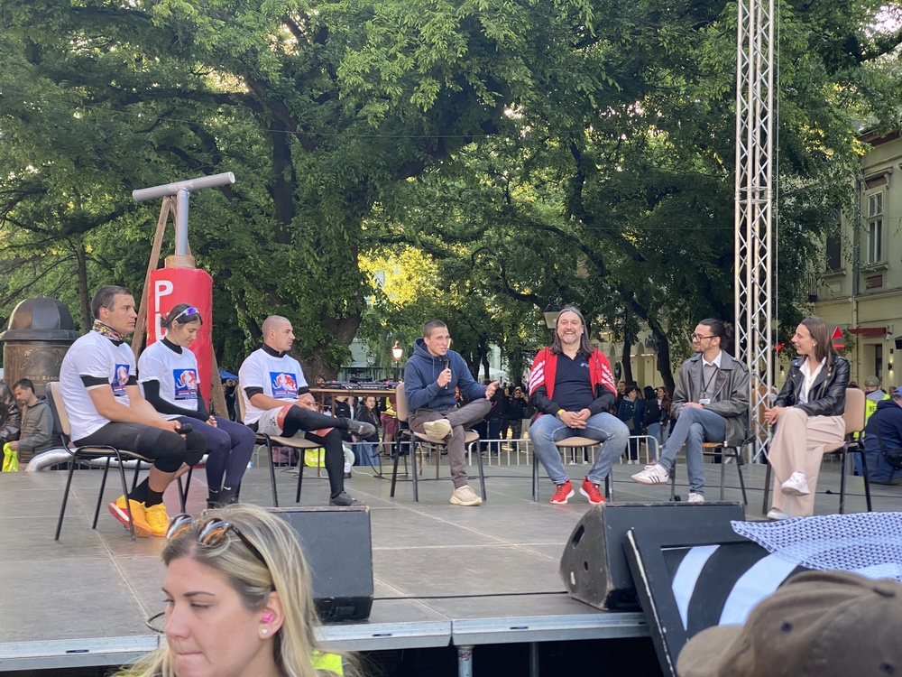 Subotičani su na gradskom trgu dočekali i studente bicikliste koji su se pridružili svojim kolegama na protestu, a pre nego što su otišli da se odmore, učestvovali su u studentskom podkastu uživo sa bine gde su podelili sa građanima svoja iskustva iz Brisela.