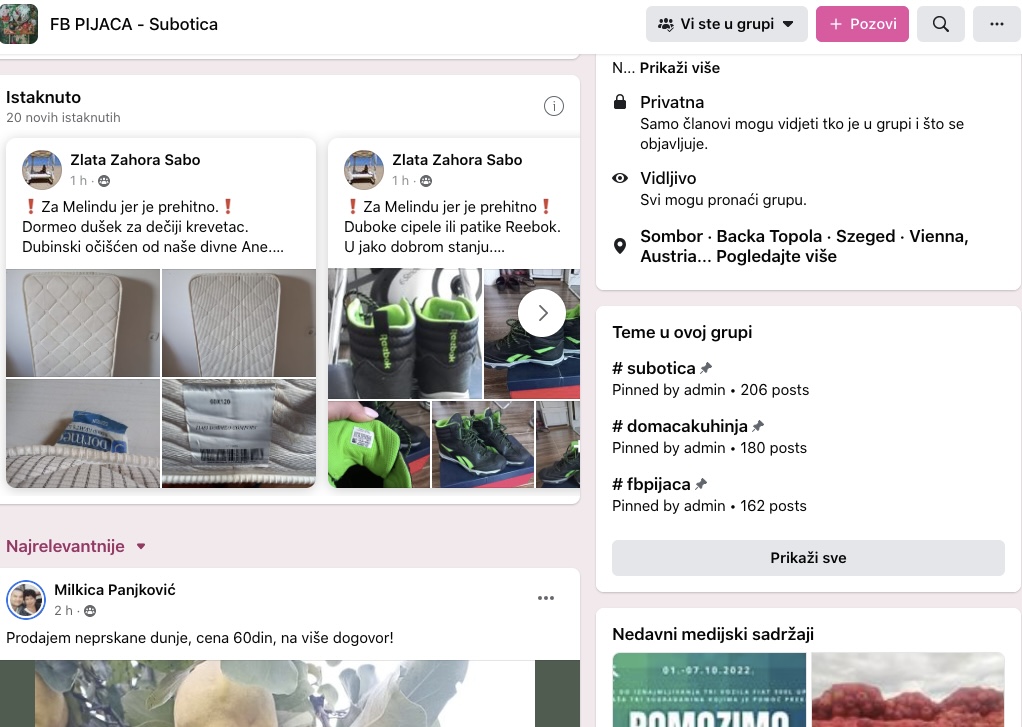 Osnivačice grupe, Sabina Klener Bagi i Zlata Zahora Sabo, kažu za Magločistač da „FB Pijaca“ svaki dan objavljuje licitacije ili SMS nagradne igre za Melindu, a da ih dnevno bude i više desetina.
