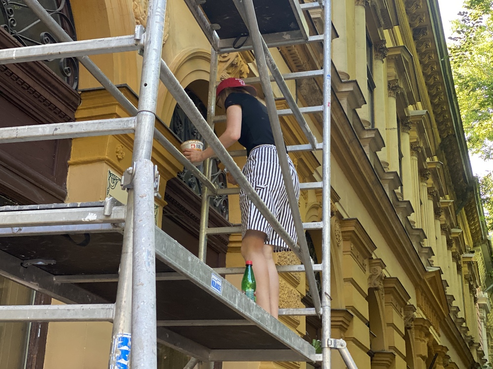 Posebno dragocenu pomoć predstavljala je, naglašava Natalija, jedna žena sa iskustvom u farbanju i poznavanju boja, a koja je savršeno pogodila ton boje, pogotovo kada se od četiri nijanse žute traži baš ona prava – za originalni izgled fasade.