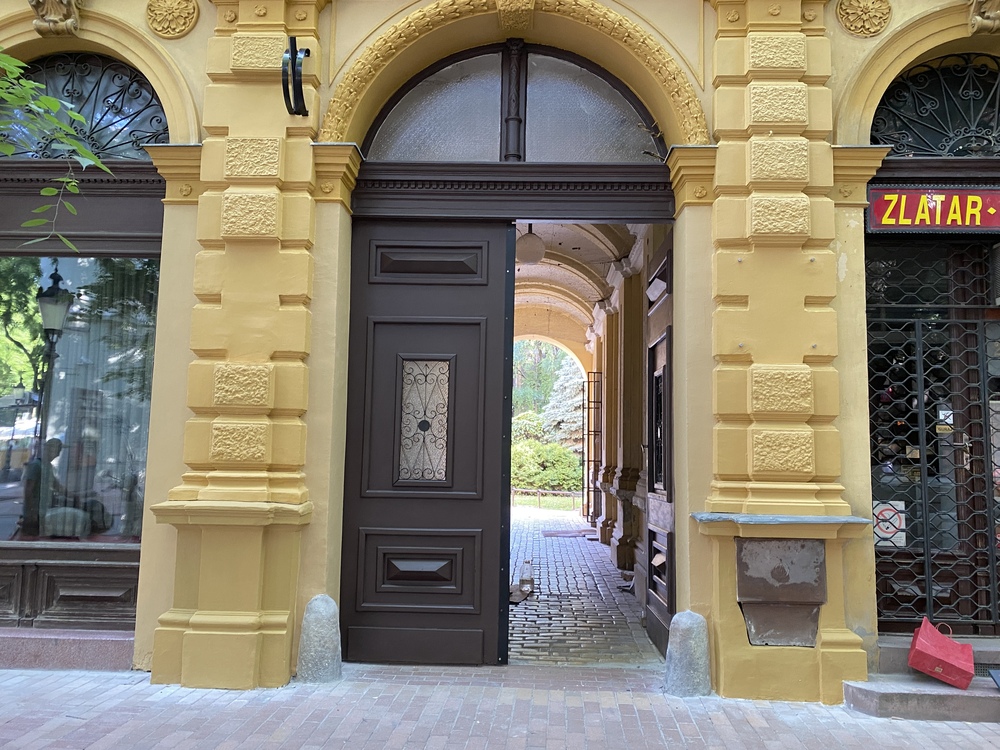 Fasadu ovog ugaonog objekta – o kom se godinama niko ne brine – ružio je veliki broj grafita. Danas su oni uklonjeni, a zgrada je dobila nazad svoju prepoznatljivu oker žutu boju.
