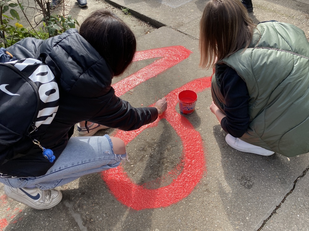 Đaci Srednje medicinske škole u Subotici prosuli su danas crvenu farbu ispred ulaza u školu i ostavili otiske 16 pari dlanova na trotoaru, te ispisali crvenom bojom broj 16, ali i upitnik koji simbolizuje razlog zbog kog mladi u Srbiji protestuju.