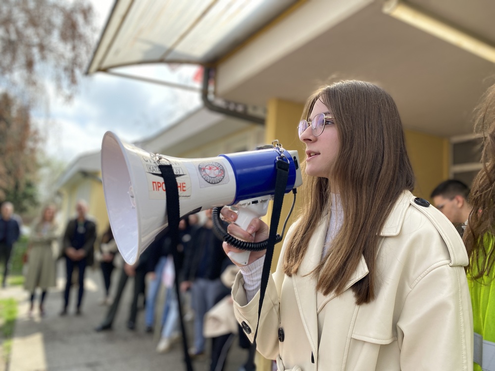 „Zajedno smo u građanskoj neposlušnosti već nedeljama, međutim, ima naših profesora i vršnjaka koji se još uvek prave gluvi na sva dešavanja. Oni nas još i sputavaju u našim akcijama i u izražavanju kritičkog mišljenja, koji je deo i osnov svakog slobodnog društva“, navela je.