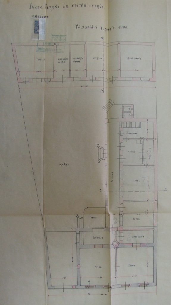 Do 1909. godine pojavio se kao novi vlasnik parcele Ferenc Ince (Incze Ferencz) koji je iste godine predao molbu da na parceli dogradi postojeću prizemnu građansku kuću (Istorijski arhiv Subotice, F:2, ép. eng. I kör 9/1909.). Na osnovu projekta jasno je da je neko u međuvremenu umesto prizemne seoske kuće izgradio građansku kuću vrlo jednostavne pravougaone osnove, koja je imala dve sobe orjentisane prema ulici, pored njih suvi ulaz i trem duž kuće orjentisan prema dvorištu u koji se ulazilo u kuhinju iste širine kao i trem. Na ovu osnovu kuće, prema projektu Maćaša Šalge iz 1909. godine, dograđen je dvorišni krak kuće i pomoćni objekat u dnu parcele. Dotadašnja kuhinja pretvorena je u nišu za spavanje. Iza nje u nizu dograđene su bile još dve sobe, kuhinja, kupatilo i ostava za hranu. Sve ove prostorije duž dvorišne fasade pratio je dugačak hodnik na čijem kraju se izlazilo do dva poljska wc-a naslonjena na dvorišni krak kuće. Kuća je tako promenila svoje tipološke karakteristike što se tiče oblika i rasporeda prostorija. Od dvosobne građanske kuće pravougaone osnove postala je kuća na lakat, odnosno kuća u obliku latiničnog slova „L“ sa četiri sobe. U pomoćnom objektu u dvorištu bile su predviđene dve štale, dve ostave za alat i perionica za rublje. Pomoćni objekat zatvarao je parcelu prema zapadnom susedu, pružajući se celom širinom parcele od južnog do severnog suseda.