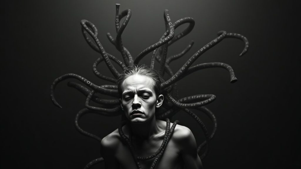 AI generisana fotografija čoveka zarobljenog u algoritmu (Magločistač)