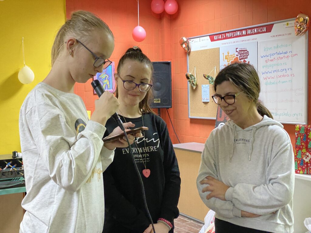 „To su uglavnom neke kreativne radionice tokom kojih nešto pravimo i stvaramo, ili su neke takmičarske igre u kojima oni učestvuju, ili kvizovi gde pevamo, plešemo, sviramo i razgovaramo na određene teme koje su aktuelne za ovu ciljnu grupu dece, za srednjoškolce“, napominje.