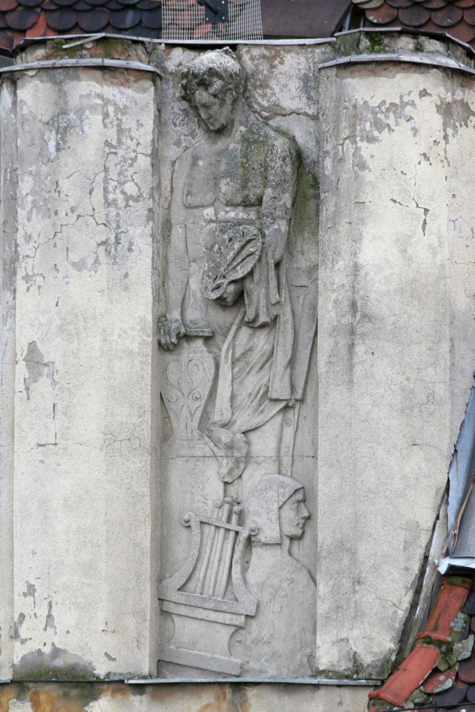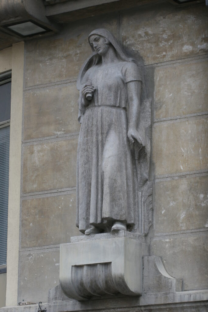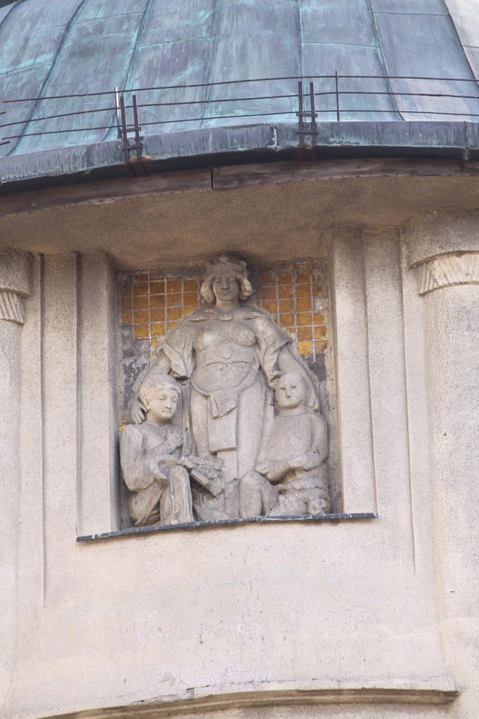 Ove skulpture u dubokom reljefu značajne su po modelaciji forme kao i po uklopljenosti u arhitektonsku celinu zgrade.