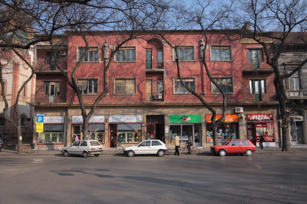 Crvenu kuću Armina Rota na Trgu Jakaba i Komora 4 projektovao je Ferenc Bede 1932. godine u stilu moderne.