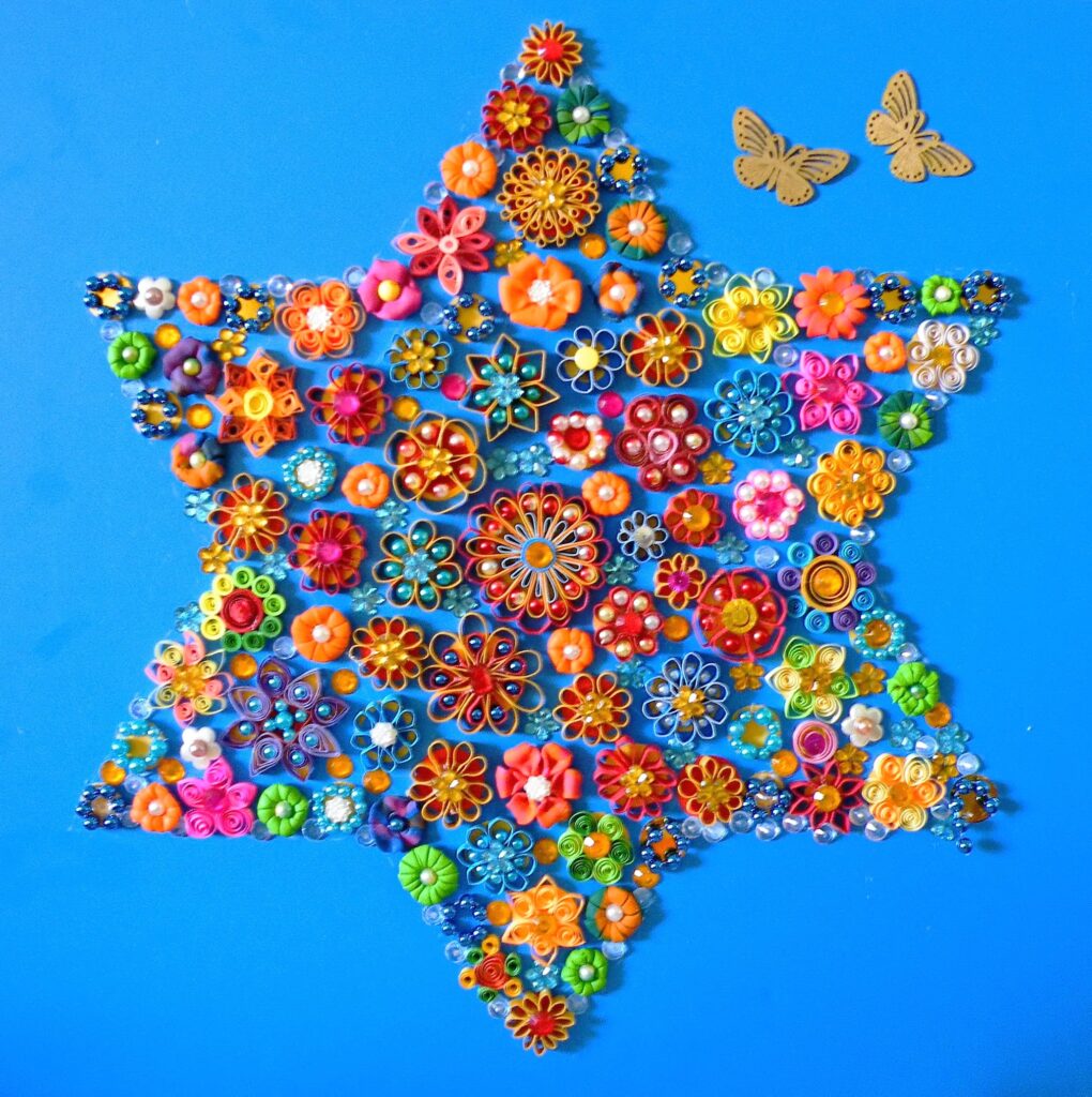 Rad na kome se nalazi Davidova zvezda je sa jedne strane vizuelna simbolika, obeležje jevrejske tradicije, kaže Rudić Vranić i dodaje da je zvezda sačinjena od papirnog cveća i da je u pitanju grupni rad članica kreativne radionice, jer je svaka od njih napravila nekoliko cvetova, što odražava neku simboliku.
