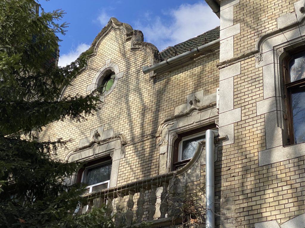 „Secesijski detalji su stilizovani floralni ornamenti iznad prozora gde se prvi put javlja motiv lale, koji je u periodu secesije postao simbol mađarskog identiteta, dok se na spratnom delu javlja ljiljan, od srednjeg veka u Francuskoj poznat kao simbol kraljeve časti“, objašnjava Džamić.