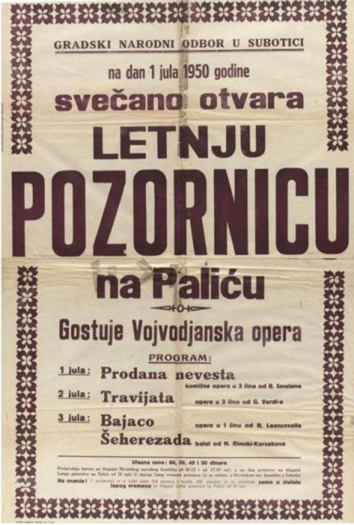 Letnja pozornica na Paliću ove godine proslavila je svoj 75. rođendan. Izgrađena 1950-te sa vizijom da bude centar kulturnih dešavanja u Subotici, ali i šire, od tad pa do danas prošla je i kroz periode zapuštanja, ali i više faza obnove, postavši simbol susreta prirode i umetnosti, ocenjuje za portal Magločistač Neda Džamić, istoričarka umetnosti iz Međuopštinskog zavoda za zaštitu spomenika kulture u Subotici.