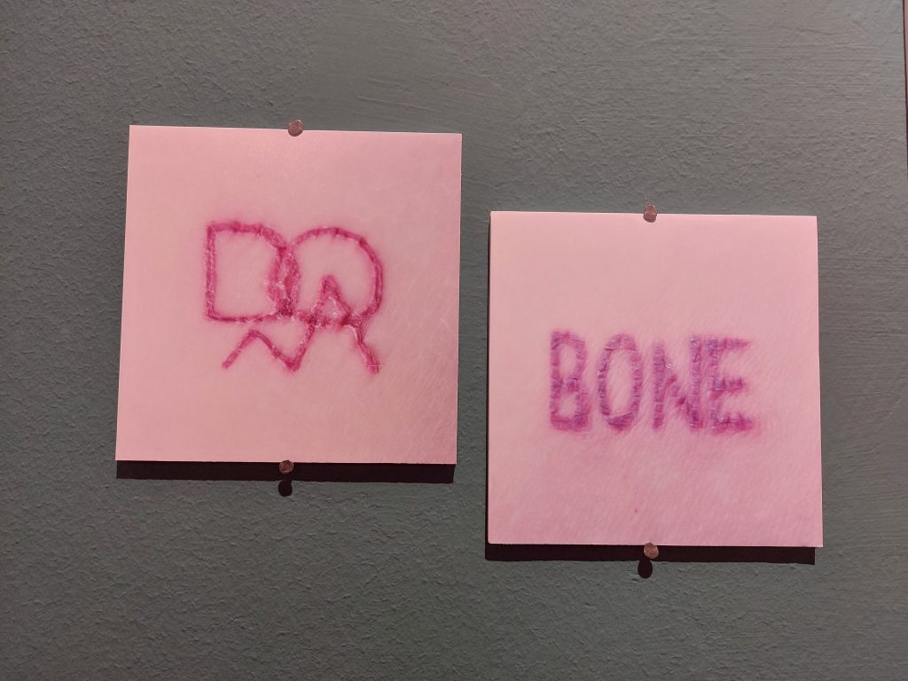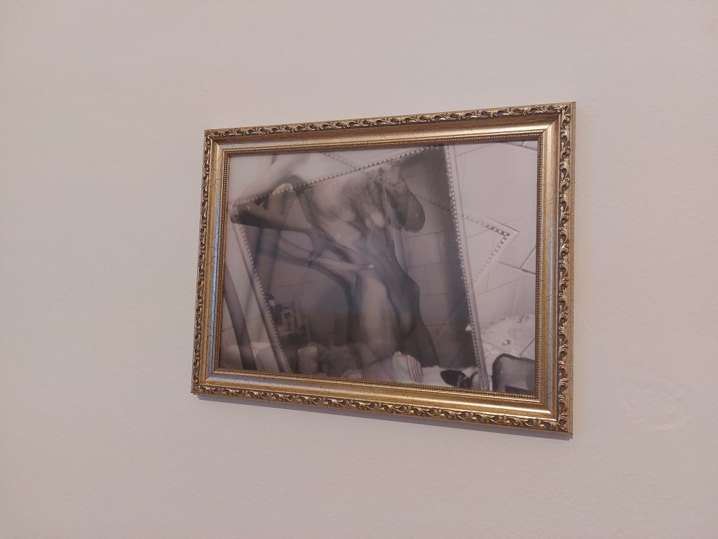 Apsolutno sve i ništa! Što se tiče tog specifičnog rada, koji sam inače radila za Queer salon, htela sam da prikažem kako sam to ja podvedena u društvu. Sve je jedno preko drugog pisano tako da je napravljena zapravo modrica, beleg koji nije čitljiv.