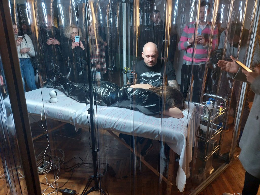 I to je već bilo dovoljno da zagolica pažnju subotičke publike, a najava performansa u vidu tetoviranja vizuelnog znaka ove ustanove na koži umetnice dodatno je pobudila interesovanje.