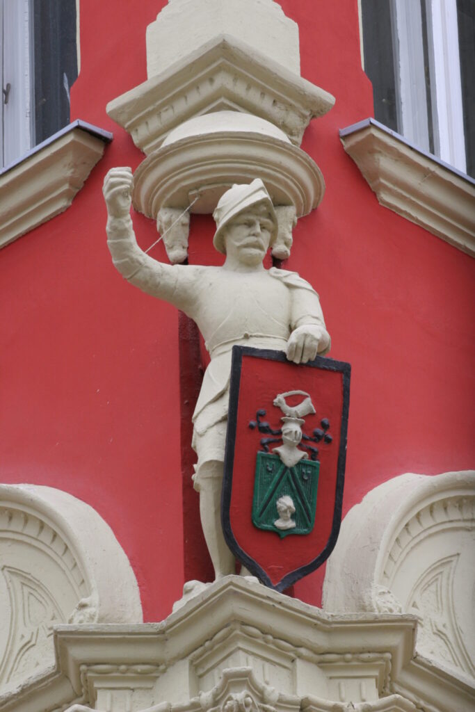Prilikom konzervacije i restauracije fasade 2007. godine radovi su izvođeni na licu mesta. Pažljivo se rekognisciralo stanje skulpture viteza. Osim hemijsko-bioloških procesa nisu se desila veća oštećenja. Nije došlo ni do zamora materijala, a nakon skidanja hirofe (špricane smese kamene rizle) pranjem i mehaničkim metodama, pokazalo se da je figura stabilna. Ukoliko farba nije kompatibilna sa materijalom na koji se nanosi, dolazi do vrlo ružnog zbacivanja boje sa površine. Skulptura je obojena i vraćena u prvobitno stanje, a fasada je zasijala u punom obeležju stila u kom je napravljena.