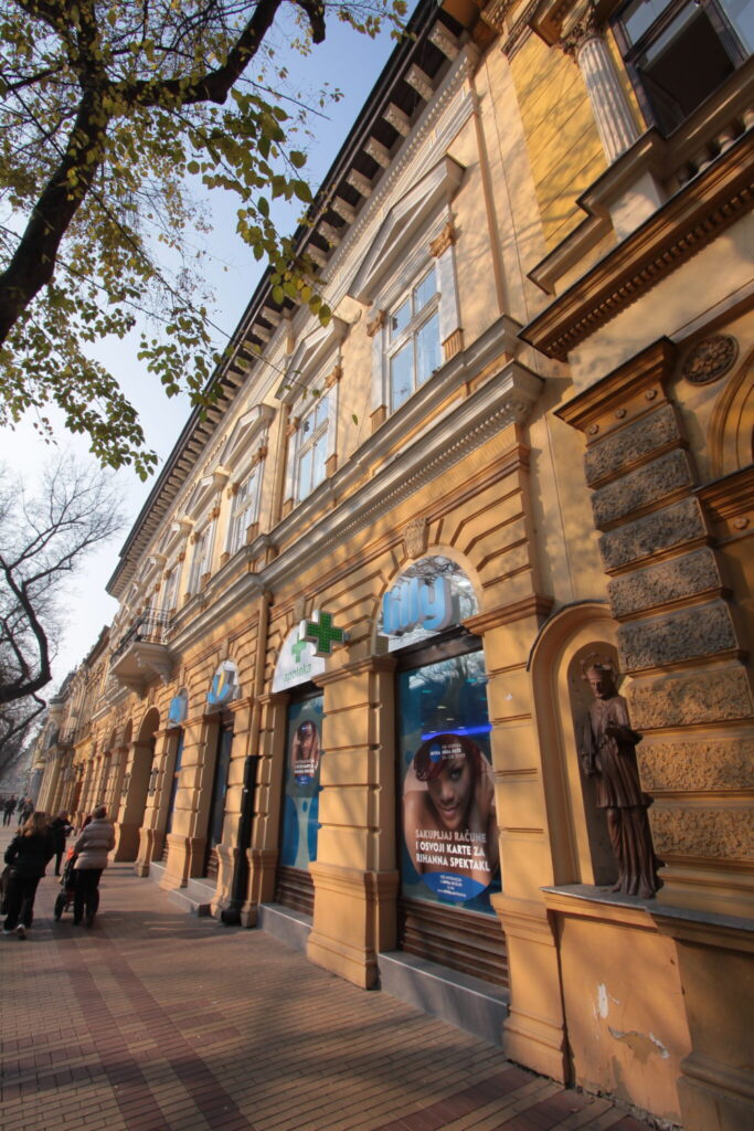 Fasada trenutno čeka svoju restauraciju. Reljefi od gipsa su u dobrom stanju. Međutim, od aerozagađenja nastali su talozi prljavštine, koja narušava izgled raskošnih mitoloških predstava. Sigurno će nakon čišćenja fasade puna plastičnost ovih reljefa doći do izražaja. Tome će doprineti i kolorit fasade, kao i struktura mase za farbanje. Zavod se zalaže da zgrade u zaštićenom jezgru koje su prekrivene hirofom (smesom tucanog kamena i farbe koja se prskanjem nanosi na zid) zameni glatkim fasadnim tretmanom, jer hirofa u svojoj zrnastoj strukturi zadržava velike količine prašine zbog čega se objekat brže zaprlja.