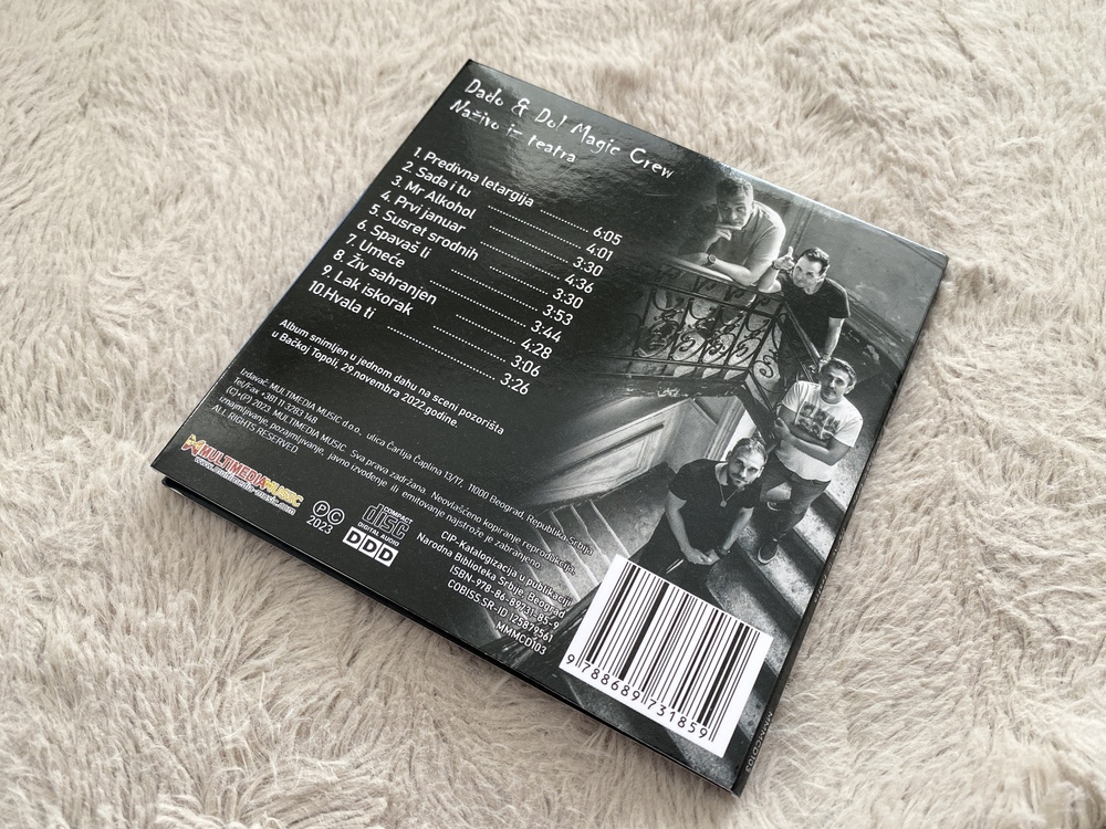 Album „Naživo iz teatra“ je izdala diskografska kuća „Multimedia Music“ u čijim prostorijama je nedavno održana i prva promocija albuma na kom se nalazi 10 pesama čiju muziku, tekst i aranžman potpisuje Damir Dado Dolmagić: „Predivna letargija“, „Sad i tu“, „Mr Alkohol“, „Prvi januar“, „Susret srodnih“, „Spavaš li“, „Umeće“, „Živ sahranjen“, „Lak iskorak“, „Hvala ti“. Miks zvuka uradio je Viktor Kesler, a za fotografije su zaslužni Damir Vujković i Goran Cvijanov.