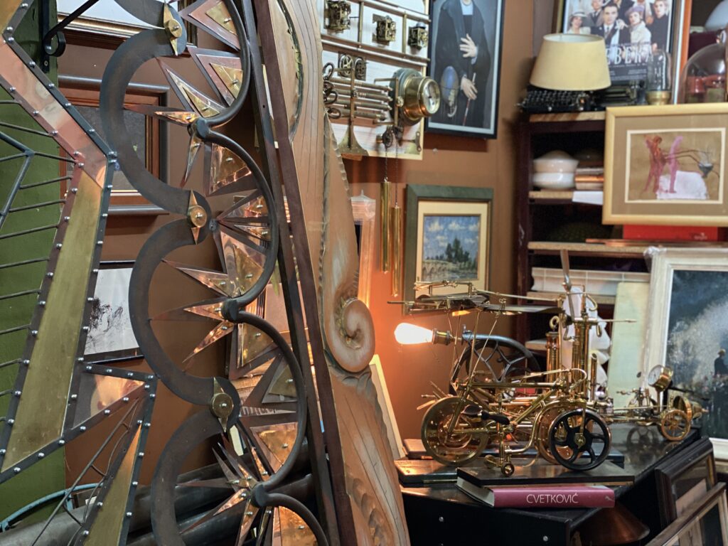 Uglavnom je to perpetuum mobile, znači sve što se okreće, kotrlja. Ima tu i jedrilica, automobila, lokomotiva, satova, truba, i drugo. Ne mogu da izdvojim na koje sam sve radove posebno ponosan. Pa recimo, jedan od radova koji sam poklonio Vojno medicinskom fakultetu (VMA). Tadašnjem dekanu su se mnogo dopale ove skulpture jer voli umetničke stvari, a onda sam ja njemu poklonio jednu skulpturu i drago mi je da se ona nalazi na jednom takvom mestu. Ima još puno toga, ono što je u inostranstvu, što su kupovali neki ljudi. Imam radove u Njujorku, Moskvi, Parizu, Francuskoj, gde sam imao i izložbu. Čovek onda ima neki osećaj uspeha. U Palati umetnosti u Budimpešti sam izlagao pre 16 godina i to je bila druga najposećenija kolektivna izložba te godine u Mađarskoj. To mi je bilo jako drago jer su Francuzi to organizovali povodom 150 godina rođenja francuskog književnika Žila Verna.
