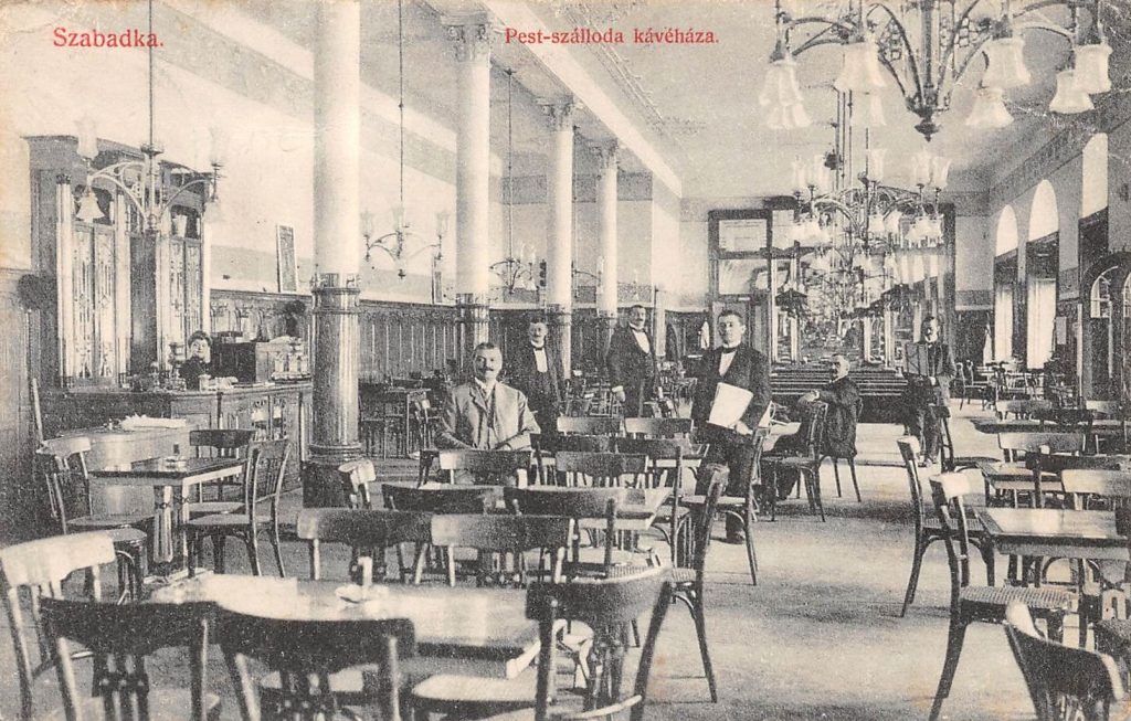 Prema njenim rečima, o secesijskim enterijerima znamo mnogo manje jer su uglavnom uništeni, ali još uvek se priča o Gradskoj kafani (Varosi kávéház) u Gradskoj kući i drugim čuvenim subotičkim kafanama sa prekretnice 19. u 20. vek, koje su imale enterijer u stilu secesije kao što je bila kafana u Narodnom pozorištu (Pest-szálloda kávéház, ili hotelu „Zlatno jagnje“ (Arany bárány-szálloda kávéház, danas Dom vojske na adresi Korzo 3).