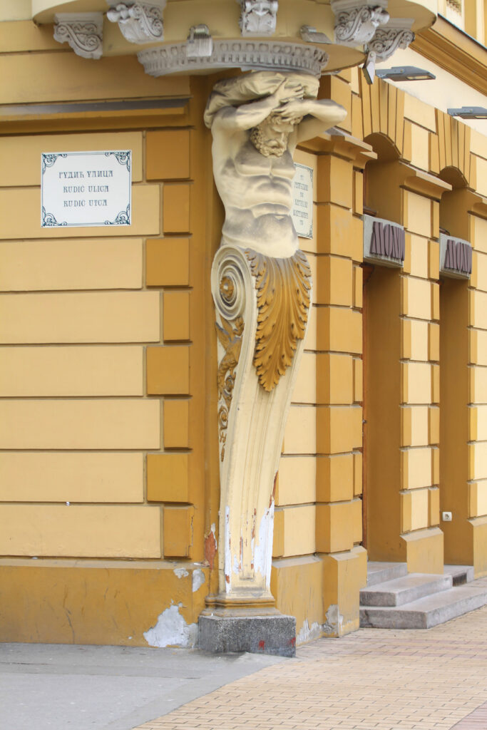 Atlasi po pravilu uvek naglašavaju balkone i erkere. Prilikom istraživanja smo utvrdili da je figura Atlanta izlivena od terakote, kao dekorativni element koji se u to vreme serijski proizvodio. Identične primerke nalazimo na fasadama u Baji, u Mađarskoj, u Subotici i Beogradu. U Subotici je smešten u prizemnom delu tzv. Milinovićeve najamne kuće u Rudić ulici 2, koju je projektovao Titus Mačković, u stilu eklektike sa elementima baroka, renesanse i klasicizma 1879. godine. Titus Mačković je figuru Atlanta na uglu objekta, preuzeo iz prvobitnog projekta ove zgrade od arhitekte Nandora Vagnera. Zato na ovoj fasadi ne nalazimo samo odlike Mačkovićevog stila, nego i drugog autora, što čini ovu fasadu zanimljivijom i bogatijom u smislu dekoracije.