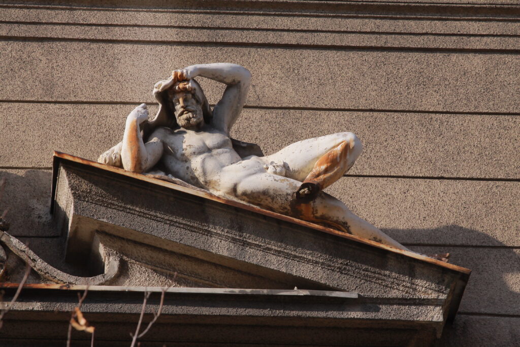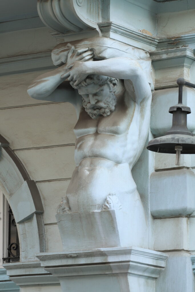 Smešteni su sa obe strane ulaza i za razliku od onih u Baji, čija se tela od struka nadole identično završavaju, beogradski Atlanti imaju drugačije dekorativno rešenje donjeg dela reljefa. Vrlo slične figure, ali ne iste, nalazimo u Segedinu i u Senti. Serijsku izradu skulptura od terakote nalazimo i na drugim zgradama. Kompozicije koje predstavljaju mitske ličnosti proizvodile su se kako bi ukrašavale eklektične fasade, najčešće iznad lučnih otvora. Objekat u Subotici u ulici Korzo 8, poznat kao Manojlović palata, nešto je mlađi od objekata u Beogradu na kojima nalazimo identične motive dekorativne plastike. U Resavskoj ulici 18, na fasadi objekta iz 1890. godine postavljena je identična muška figura u poluležećem položaju, koju na subotičkoj fasadi prepoznajemo kao Zevsa. Na beogradskoj fasadi je ova muška figura ukomponovana sa još jednom figurom muškarca.