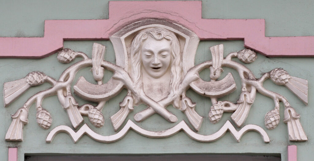 Daljem prilogu za primere figura rađenih po kalupu mogu poslužiti secesijske maske devojke napravljene od gipsa, postavljene na fasadi Kulturno umetničkog društva „Nepker” (Népkör) u ulici Lajoša Košuta 4 u Subotici. Objekat je projektovao Ištvan Vaci (Váczi István) u stilu pozne secesije i izgrađen je 1926. godine.