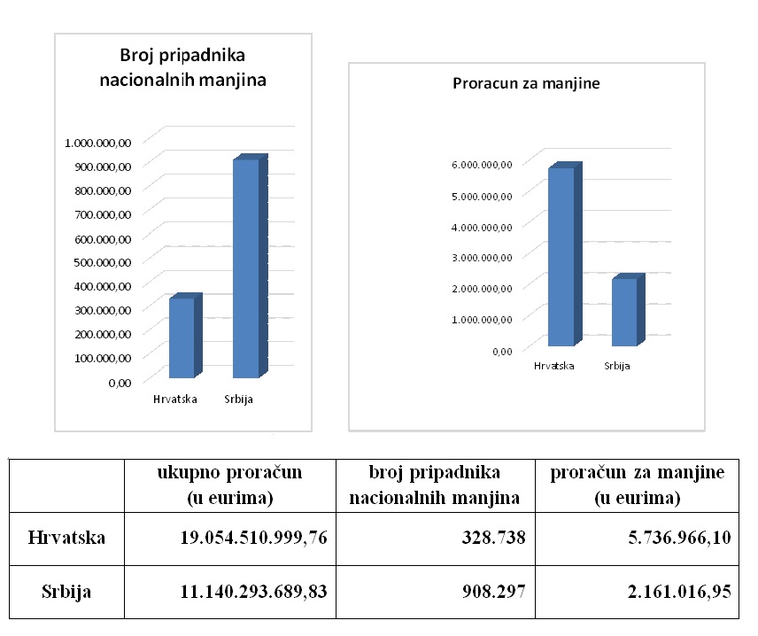 Proračun Republike Srbije za 2020. godinu iznosi 11,3 milijardi eura, odnosno 15 milijardi eura, što je rebalansom u jedanaestom mjesecu povećano. Obzirom na činjenicu da se iz tog proračuna za rad i djelovanje 22 krovne institucije nacionalnih manjina koje predstavljaju gotovo jednu osminu, odnosno 12,6 % građana Republike Srbije izdvaja tek 0.02 % (2,1 milijun eura) od čega hrvatskoj zajednici u Republici Srbiji pripadne tek 109.970,98 eura, obavijest o umanjenju sredstava nacionalnim vijećima sličila je dobro poznatoj priči o paradoksima sustava vrijednosti iste osobe spram različitih subjekata.