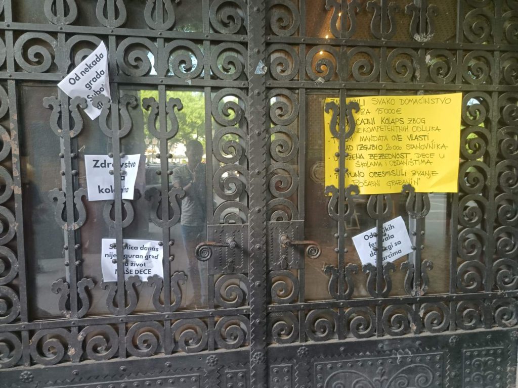 Današnji performans Stranke slobode i pravde, Narodne stranke, Pokreta slobodnih građana i Ekološkog ustanka ispred Gradske kuće, izvor: SSP Subotica