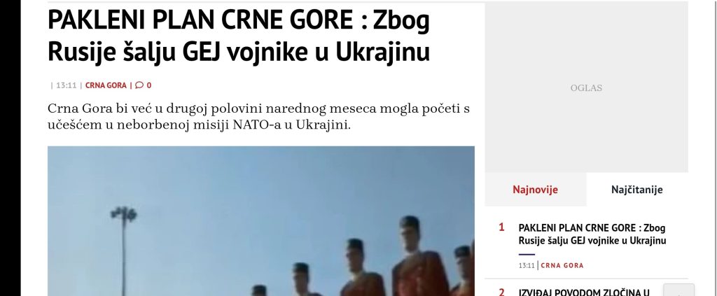 Ako, međutim, to nije slučaj, reč je o obliku medijske manipulacije, što se desilo u slučaju lista Alo koji je objavu crnogorskog satiričnog Zicera – u kojoj se navodi da njihova zemlja u Ukrajinu šalje deset vojnika i vojnikinja, od kojih su troje gej – preneo kao istinitu pod naslovom “Pakleni plan Crne Gore: Zbog Rusije šalju gej vojnike u Ukrajinu”.