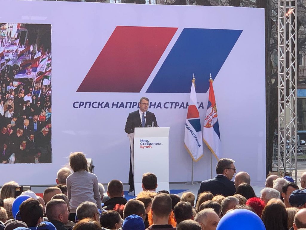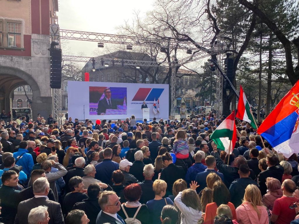 „Ponosan sam na državu koju smo napravili, u kojoj, na jednoj ovakvoj manifestaciji, u momentu podrške predsedničkom kandidatu Vučiću mogu da se obratim na svom maternjem jeziku. Pre svega da pozdravim sve one koji su me iz SVM-a dopratili ovde da se pokažemo, da poručimo da smo saborci u tome da od Srbije napravimo bolju državu nego što je danas“, rekao je predsednik Saveza vojvođanskih Mađara (SVM), Ištvan Pastor.