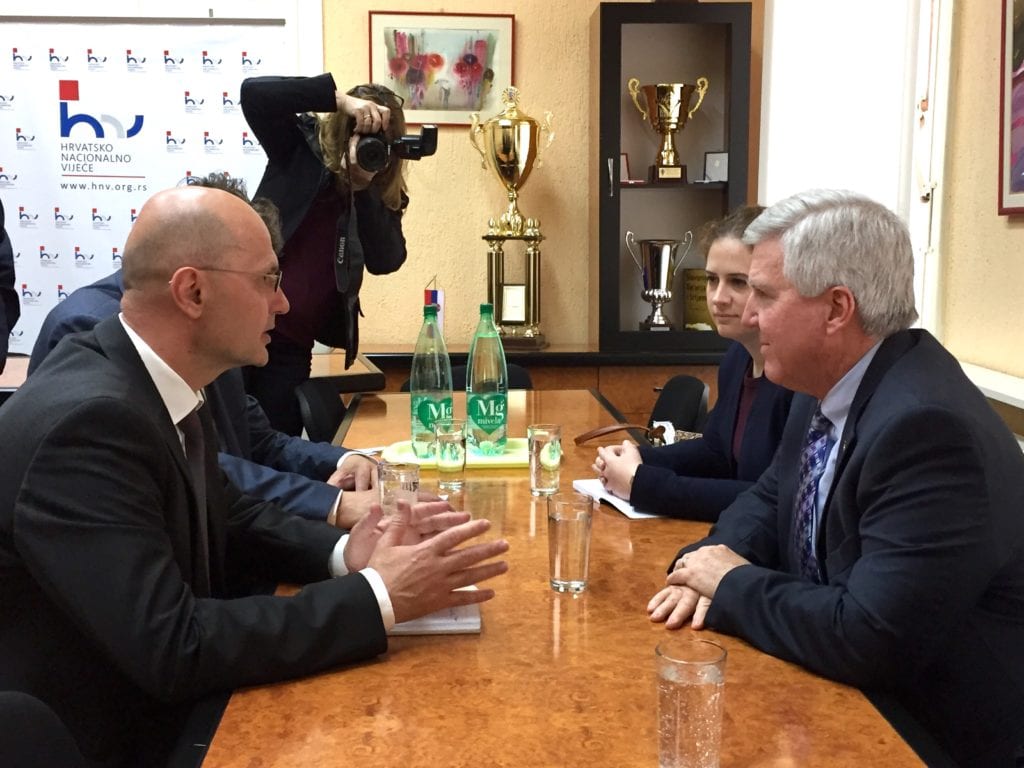 Američki ambasador Kajl Skot rekao je da je u razgovoru sa predstavnicima hrvatske zajednice bilo reči o problemima sa kojima se suočava ova zajednica i o neophodnosti da HNV bude čvršći most između Hrvatske i Srbije.