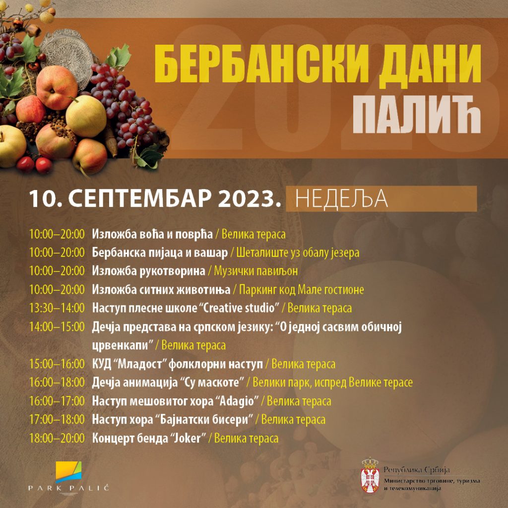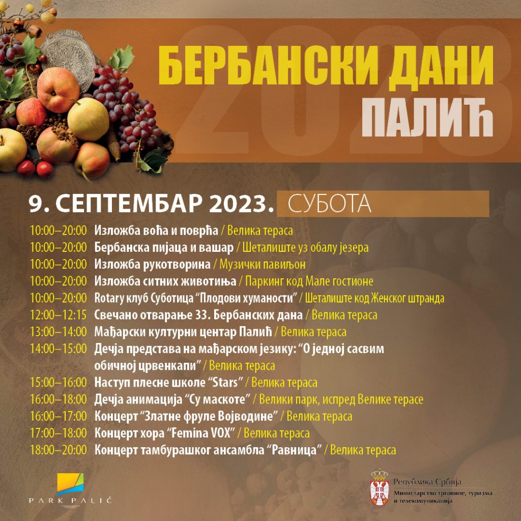Manifestacija “Berbanski dani”, koja se tradicionalno organizuje na Paliću krajem leta, biće održana u subotu i nedelju, 8. i 9. septembra.
