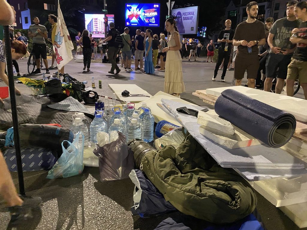 Demonstranti su postavili kordon od kontejnera za smeće sa tri strane raskrsnice koji se nalazi između policije i studenata i građana. Građani koji su odlučili na ostanu preko noći u centru grada, spavaće na stiroporu. Svima koji će prenoćiti obezbeđena je voda i osnovne potrepštine.