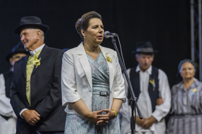 „I iznikli smo. I ponovo smo tu. I našu Suboticu možemo s ponosom zvati Varoš Subatica. I divanimo našim jezikom i kažemo s ponosom da smo Bunjevci. Večeras, ovako koliko nas ima ovde na trgu, pokazujemo koliko nam je važna ’Dužijanca’ i koliko se oko nje vekovima okupljamo. I tokom tih vekova puno toga pamtimo, ali retko pamtimo ovako dobro koje smo dobili u proteklih nekoliko godina“, istakla je.