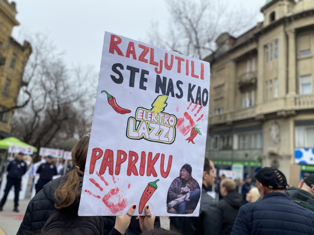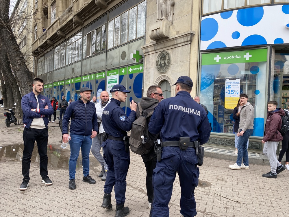 Ispred članova SNS-a stajalo je oko 15 policajaca, a nasuprot njih su bili subotički studenti i jedan broj građana koji se okupio ovde na poziv studenata u blokadi.