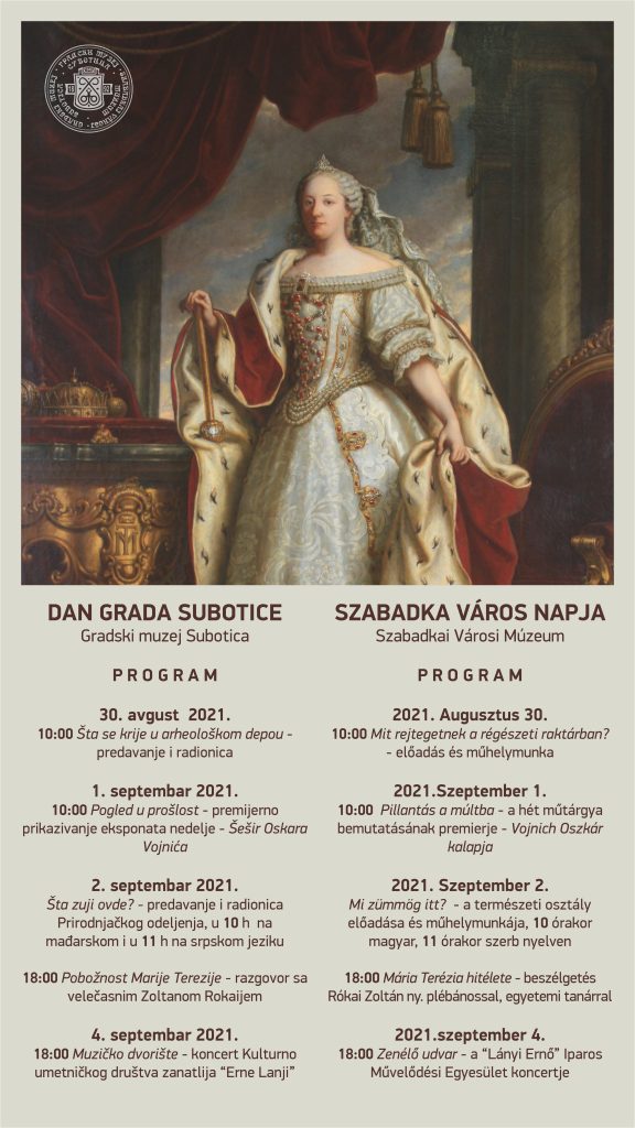 Dan kasnije, 2. septembra, biće održana radionica i predavanje Prirodnjačkog odeljenja pod nazivom “Šta zuji ovde?”, i to na mađarskom jeziku u 10, odnosno srpskom jeziku u 11 sati, a u 18 sati će biti upriličen razgovor sa velečasnim dr Zoltanom Rokajiem, na mađarskom jeziku, na temu pobožnosti Marije Terezije.