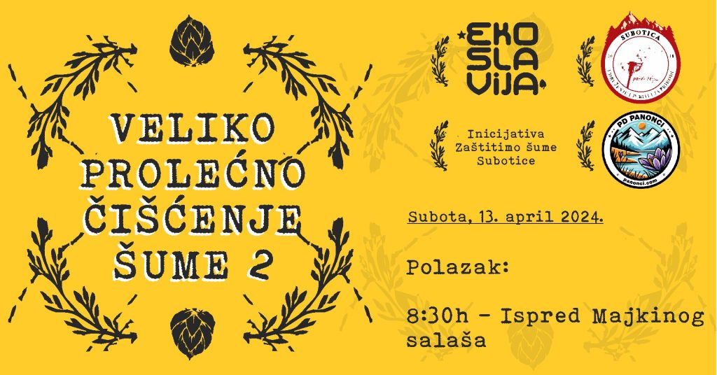 Udruženje „Ekoslavija“, „Poželi Želju“, inicijativa „Zaštitimo šume Subotice“ i Planinarsko društvo „Panonci“ iz Subotice, pozivaju Subotičane u subotu, 13. aprila, da im se pridruže u drugoj akciji čišćenja šume „Subotičke Peščare“.